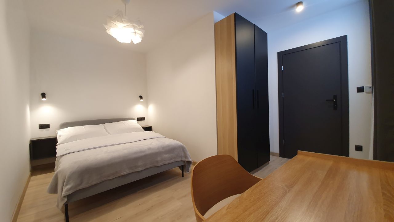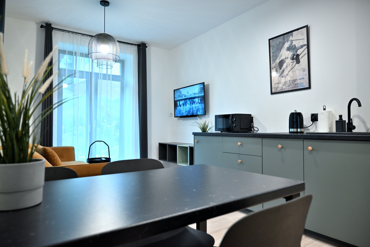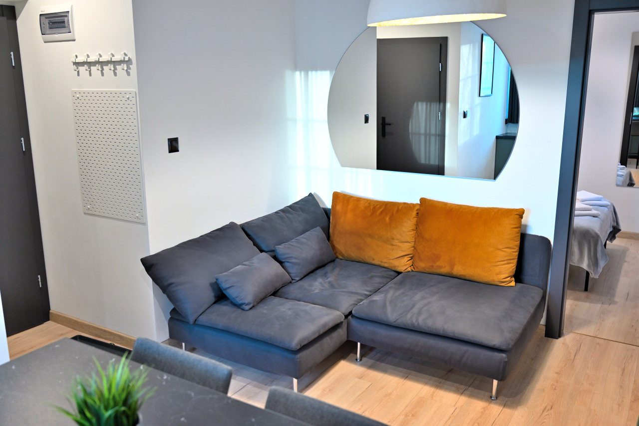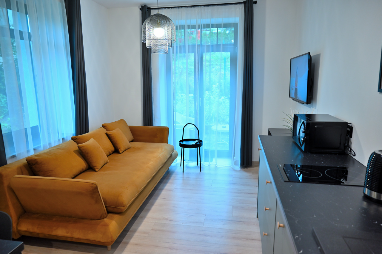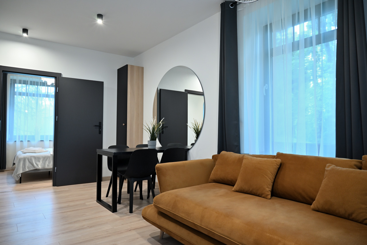 Przestronny apartament z aneksem kuchennym, oddzielną sypialnią, łazienką oraz komfortowym ogrzewaniem podłogowym.