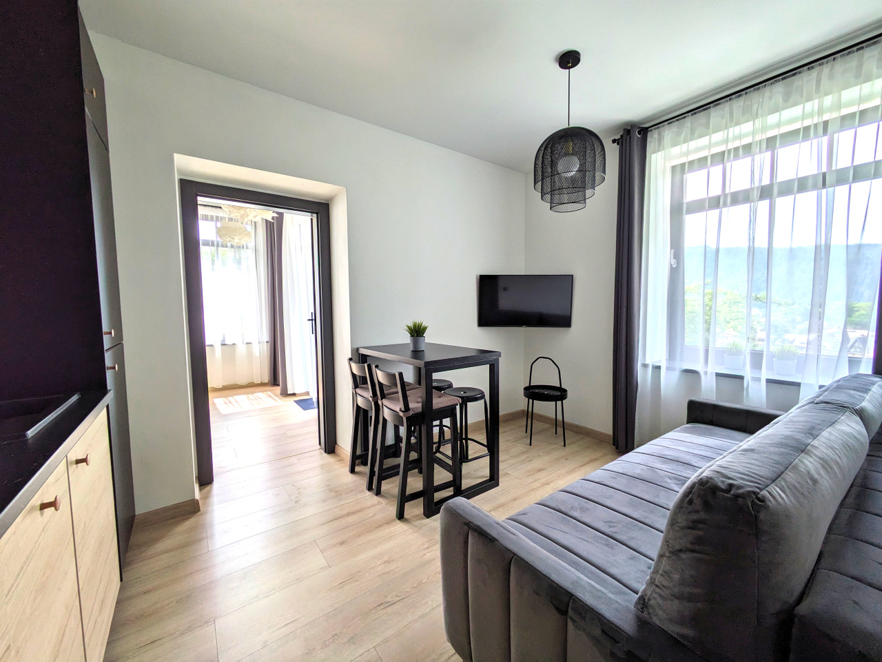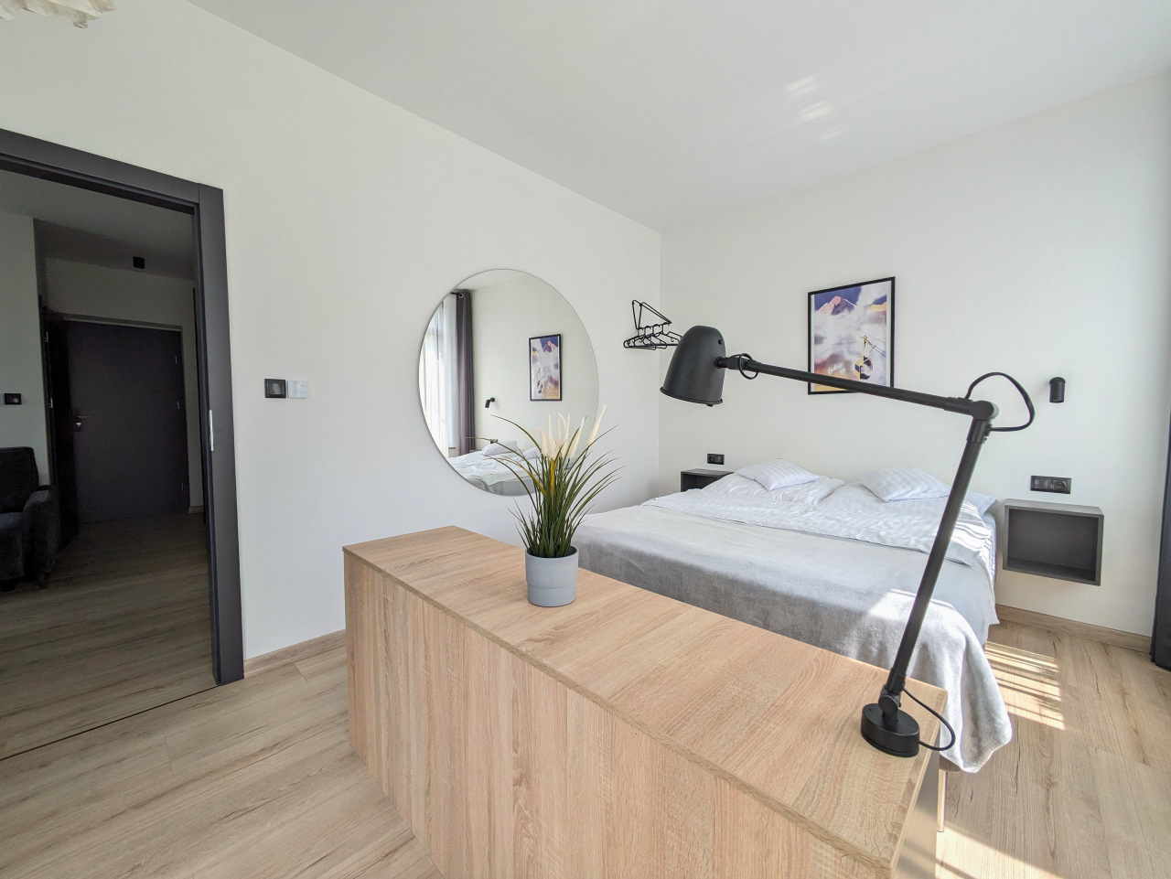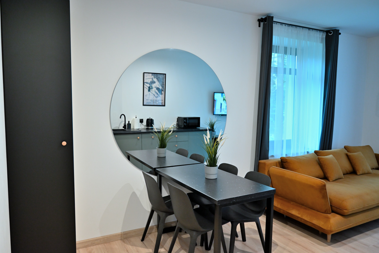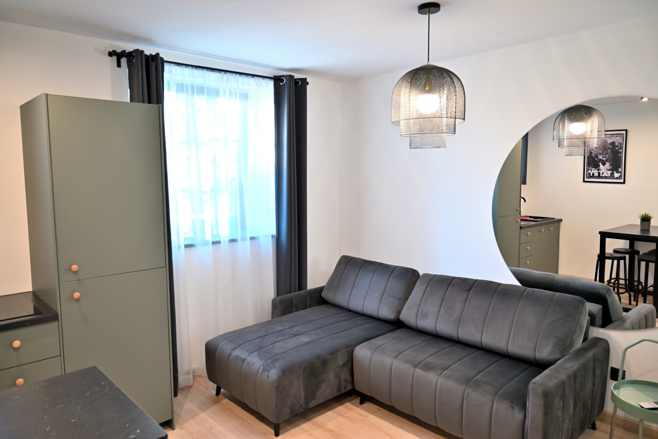 Przestronny apartament z aneksem kuchennym, oddzielną sypialnią, łazienką oraz komfortowym ogrzewaniem podłogowym.